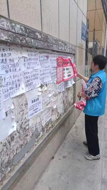 当好城市“美容师”,提升环境获赞扬。为稳步推进文明城市创建工作常态化,为居民营造优美宜居的生活环境,解放路社区网格员持续开展环境卫生整治日常巡查、文明劝导及入户宣传等活动,将飞线充电、乱停车、垃圾桶是否整洁等列为巡查重点,本着“不漏掉任何一个死角”的原则,打扫道路卫生、清理小广告、维护车辆停放秩序,利用铲刀对社区内的住户门、路两边街道墙面、电线杆还有居民家中的门窗等设施进行全方位清理,同时,为提高文明城市建设工作的参与率和支持率,网格员通过全覆盖式宣传,号召居民参与到文明城市创建中来,为助力社区环境整体提升贡献力量。