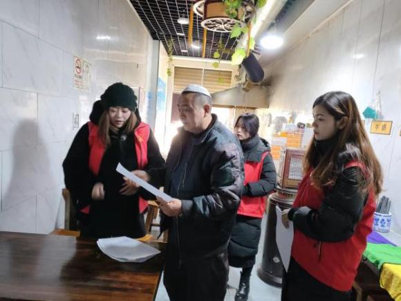 为了强化辖区居民和商户在春节期间的安全生产意识,预防春节期间辖区各类安全事故的发生,积极发挥团员青年在社会治理方面的重要作用。近日,饮马街街道团工委与水井巷实业团支部、街道综合执法中心联合开展以“关爱生命 安全生产”为主题的安全生产宣传、排查活动。