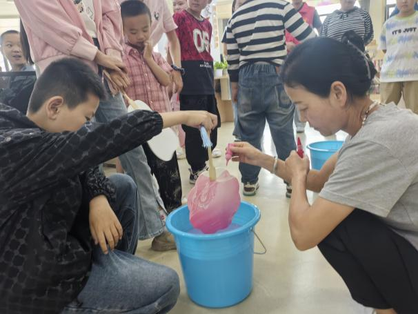 “漆”彩童心,“扇”动未来。漆扇制作课堂上,老师先讲述团扇的历史渊源,再一步步示范扇面绘画、装饰的技巧。在老师的指导下,青少年们纷纷动手实践,发挥创意,挑选自己喜欢的扇面和图案,将配色滴进水里形成有层次的色块,再将空白的纸扇放进水中,轻轻摇转几下,形成别具特色的漆扇。青少年们互相欣赏作品,在近距离接触非遗文化的同时,提升了审美与动手能力,收获满满。