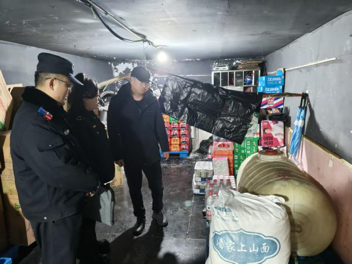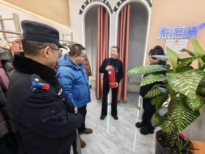 多方联动,全面排查。近日,人民街街道办事处联合水井巷市场监管所、派出所对辖区“九小场所”、大型商超、人员密集场所开展全方位联合检查。本次检查工作重点为商铺内消防设施是否能够正常使用,餐饮店内液化气、醇基液体燃料操作设备是否合格,报警器是否按要求安装连接,店铺内电线是否按要求套用保护管,是否存在私拉线路以及“飞线充电”等情况。对于不合规使用的电线进行相应说明并立即整改。对发现过道内堆放的易燃物以及阻挡逃生路线的杂物进行告知并及时清理,确保消防通道、疏散通道和安全出口畅通无阻。检查过程中询问店铺负责人是否掌握消防设施相关使用知识,并由工作人员现场模拟演示。提醒商铺负责人注意及时清理易燃易爆物,定期检查、维护各处电气线路,最大程度消除各类安全隐患。