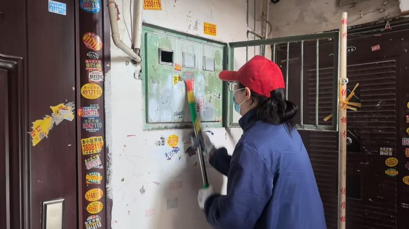 铲张贴覆喷涂,楼道洁立面净。志愿者运用小铲、同色涂料等工具,对楼道墙面、电表箱、防盗门等部位张贴的纸质小广告实施铲除,对不干胶类广告进行反复刮蹭清除,对油墨喷涂及印章类广告采用同色涂料覆盖处理。累计清理各类小广告千余张,清理后各部位无明显残留痕迹,楼道视觉环境得到有效改善。