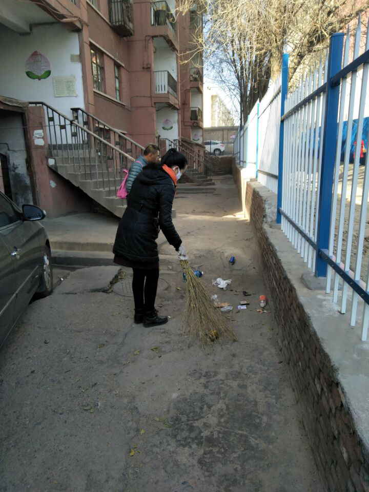 本次活动集中对南大街126号院进行了整治,社区工作人员及志愿者们冒着严寒,不怕脏、不怕累,劳动热情高涨,分工明确、相互协作,有的负责扫地、有的负责清运垃圾、有的负责粉刷,不放过一个角落,不留下一片纸屑,用实际行动将创城常态化。活动中共清理卫生死角3处,清除乱贴乱画10余处,清运垃圾2车,居民赵大叔看着大家干活,感叹地说:“社区干部们还有志愿者们为咱老百姓干活真是不惜力啊!以后咱们大家一定要自觉摒弃不文明行为,为维护辖区的环境卫生尽一份心,出一份力。”