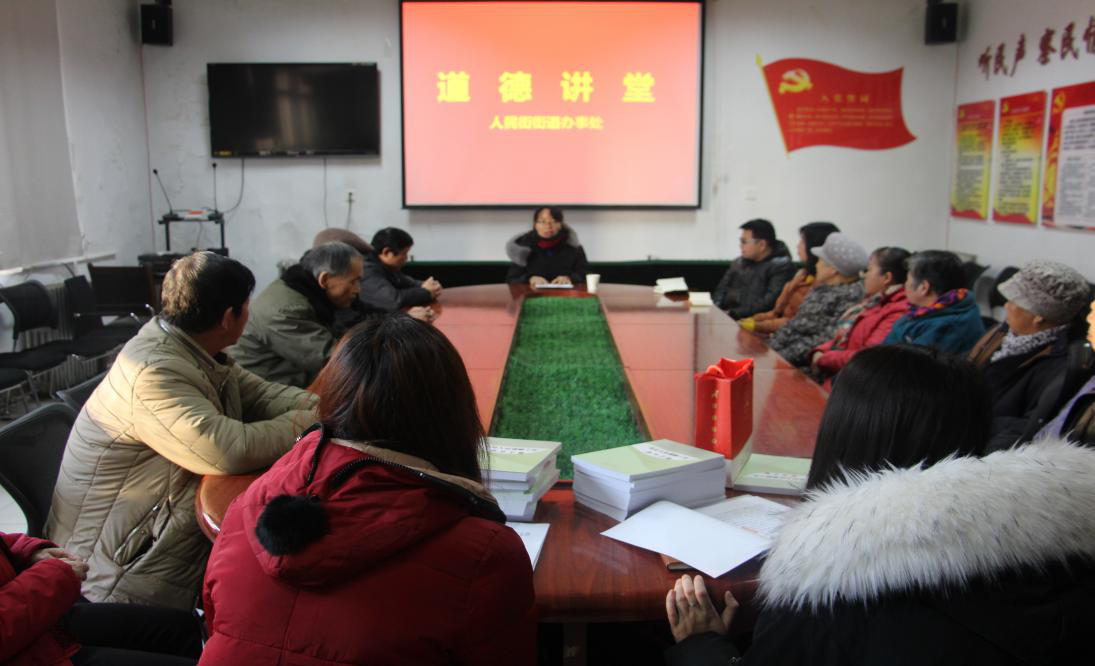 为使党的十九大精神在人民街辖区家喻户晓、人人皆知,落叶生根,开花结果,进一步引导辖区各族群众感恩党、听党话、跟党走,充分发挥道德讲堂作为市民思想道德教育载体的作用,近日上午人民街街道办事处组织机关社区、辖区居民50余人参加了道德讲堂,邀请宣讲员严素婷宣讲五星标兵户应炳文同志的先进事迹。