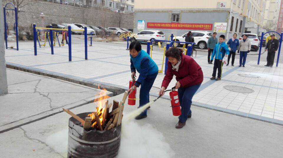 首先,物业公司组织小区保安人员、工作人员及观看消防安全相关视频。通过视频为媒介,以最直观的方式向大家展示火灾的危害,同时宣传了火灾预防、火灾抢救、自救逃生等基本消防知识。然后,组织所有人员进行消防演练。通过对消防器材的详细讲解和现场展示,并对易燃物实施灭火扑救演练,使参加人员在短时间内掌握了消防的基本要领。整个演练过程组织严密,模拟逼真,给小区工作人员和保安义务消防队员们在思想上敲响了消防安全的警钟,提高了员工们应对突发事故的应急能力及消防意识,为小区消防安全工作奠定了良好的基础。