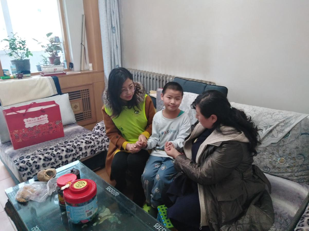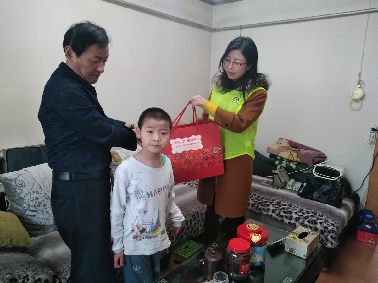 在留守儿童朋毛喜热家中,分别送上新年大礼包,也送去新春的祝福和温暖,详细了解孩子生活、学习情况,告诉他要抵制不良行为,踏踏实实做人,在家要做好孩子,在学校要做好学生,在社会要做好小公民。孩子们也表态一定通过努力学习来回报社会、亲人、老师们的关心和爱护,让赴外打工的爸爸、妈妈放心。同时社区工作人员对留守儿童及其监护人进行了“健康教育核心信息”宣传,让孩子感受到社会的关怀和照顾,帮助留守儿童健康、快乐成长。