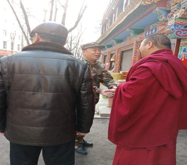 在慰问过程中,安大勇与寺管会成员及僧侣亲切交流,细问寺院各方面存在的困难和问题,鼓励他们继续秉承爱国爱教原则,建设好平安寺院、和谐寺院,为社会和谐发展提供助力。并对寺院在民族宗教和维护稳定工作方面所取得的成绩给予了充分肯定。寺院僧众也表示:“我们时刻能感受到来自党和政府的关怀,今后将更加坚定地、自觉地维护和引导广大信教群众爱国、爱教,遵纪守法,以实际行动切实维护好社会和谐稳定”。最后,综治办主任对政委的关心关注表达了忠心的感谢,并表示将带动辖区各族宗教一同,一如既往地维护区域和谐稳定,促进创新驱动发展。在推动辖区社会公益事业、完成急难险重让我中担当主力、积极作为,齐心协力推进军民融合、各民族共同团结进步,实现军地双方共赢发展。