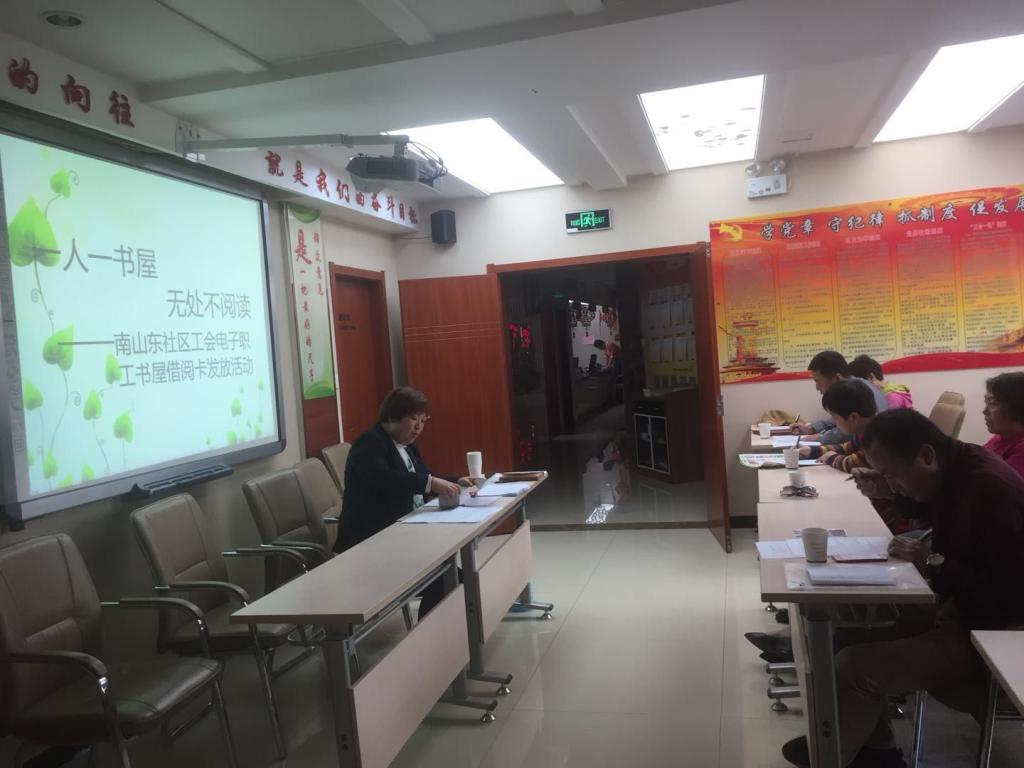 南山东社区积极在广大职工、居民中营造“爱读书、好读书”的氛围,通过建立社区图书角,购买各种专业书籍,以满足各类人群的阅读需求,并开展“每季读一本好书”等活动。此次电子读书卡的发放,与实体图书角的建立形成了有机的结合,实现了广大职工、群众指尖上阅读,为大家提供了获取信息、提高素质、提升技能的网络学习平台,让职工、居民享受“一人一书屋,无处不阅读”的数字阅读新体验。