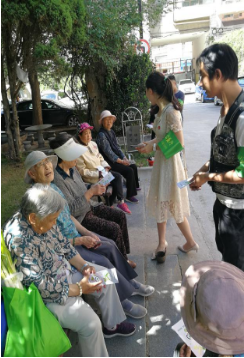 发扬楼院文化,倡导绿色公益。街道组织群团服务站“绿色公益小分队”进楼院、进家庭,大力开展以“垃圾分类专项宣传·倡导文明绿色生活新方式”为主题的绿色公益少活动,以辖区楼院环境巡查、志愿清理及垃圾分类知识专项宣传为主要内容,倡导辖区居民在生活中践行保护生态环境、低碳生活的理念,了解垃圾分类的益处,确保辖区居民对全国文明城市创建工作做到“人人知晓,人人参与,人人贡献”,活动历时4个多小时,共走访300户住户,发放宣传资料和小礼品300余份。
