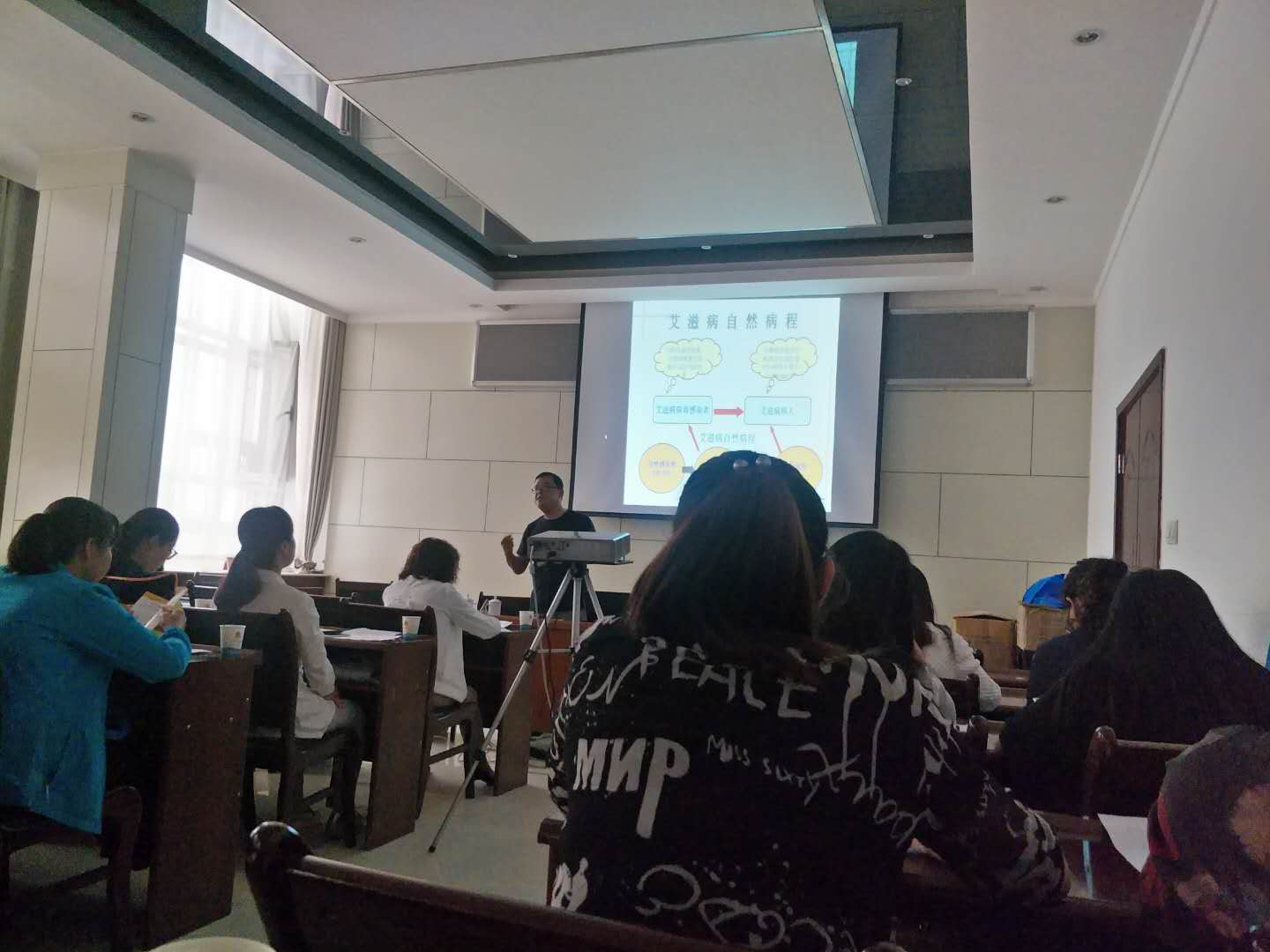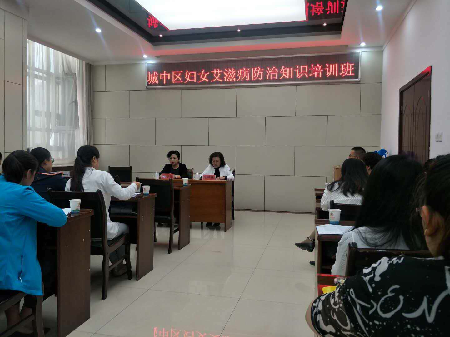 为切实做好辖区内的艾滋病防控工作,提高辖区内防治艾滋病的工作能力,进一步提升辖区妇女群众艾滋病防治知识知晓率,切实做好艾滋病宣传教育活动,更好地在妇女同志中普及防艾知识,维护妇女同志的生命健康权,增强预防艾滋病的能力和意识,近日,城中区妇联、城中区疾控中心联合在武警招待所四楼会议中心一号会议室,举办城中区艾滋病防治知识培训活动,此次讲座由区疾控中心的许老师主讲,区街镇、村、社区人员60余人聆听了此次讲座。