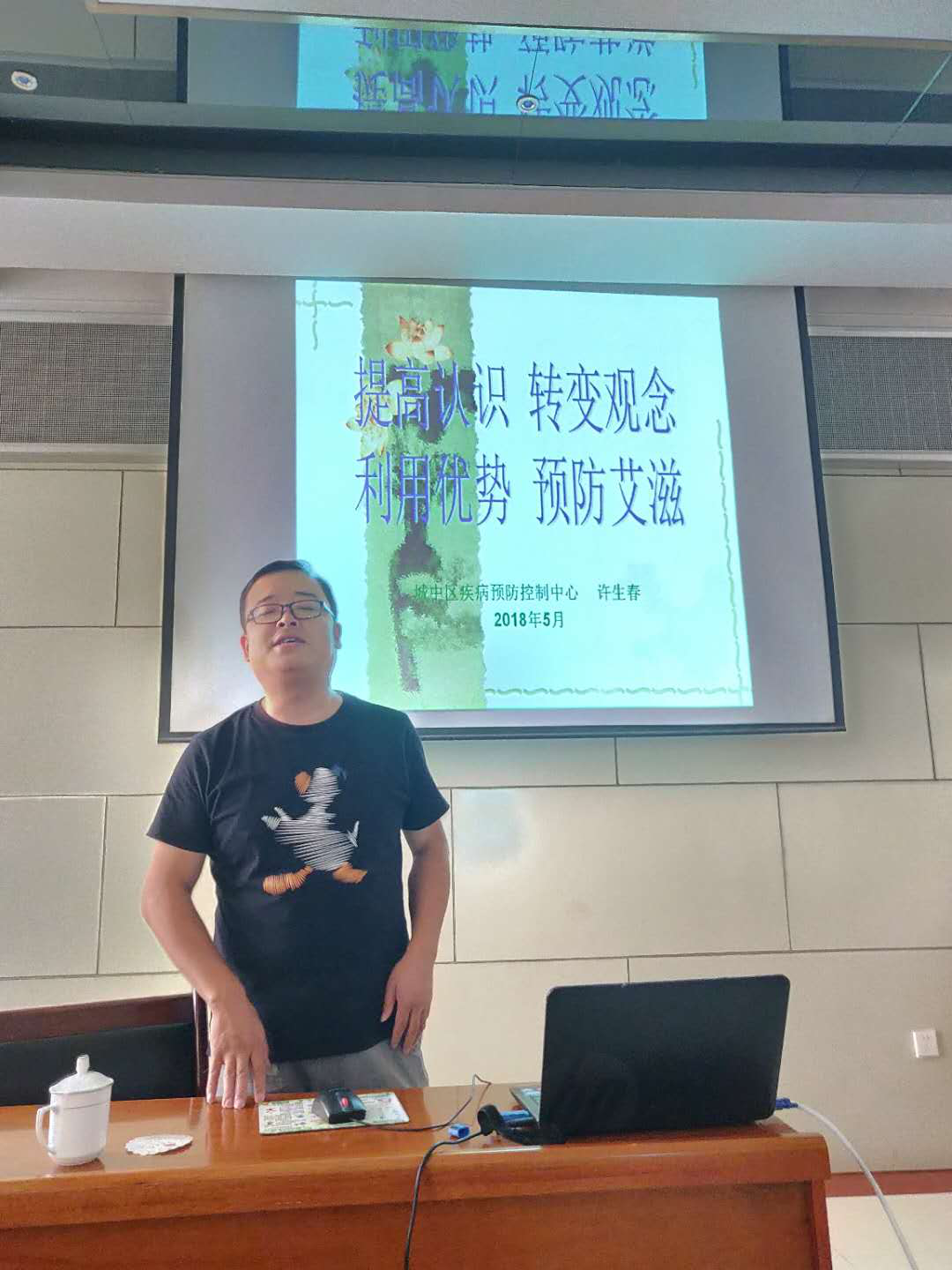 培训班上,许老师就艾滋病的现状及发展趋势做了详细地讲解与剖析,使我们学员对艾滋病的情况有力了初步的了解,使学员们认识到加大防艾宣传的紧迫性及必要性。许老师通过列举大量相关的例子,为学员们仔细讲解了艾滋病的致病原理,就艾滋病的起源、发现、发展情况;临床表现、发病状况、传播途径、防止措施等;治疗过程、艾滋病疫情、预防方法情况、艾滋病相关政策等进行了详细的讲解。又对辖区的老年群体、青少年儿童、育龄妇女及流动人口,大家要如何正确对待艾滋病及艾滋病人的态度进行了分类讲述。许老师生动形象地讲了怎样预防艾滋病的相关信息,使学员们受益匪浅。最后,学员们将平时生活中遇到的问题和存在的困惑,纷纷地向许老师提问,许老师一一的作了回答,使同学们解除了困惑,增长了知识。许老师妙趣横生的演讲,赢得了学员们的热烈掌声。