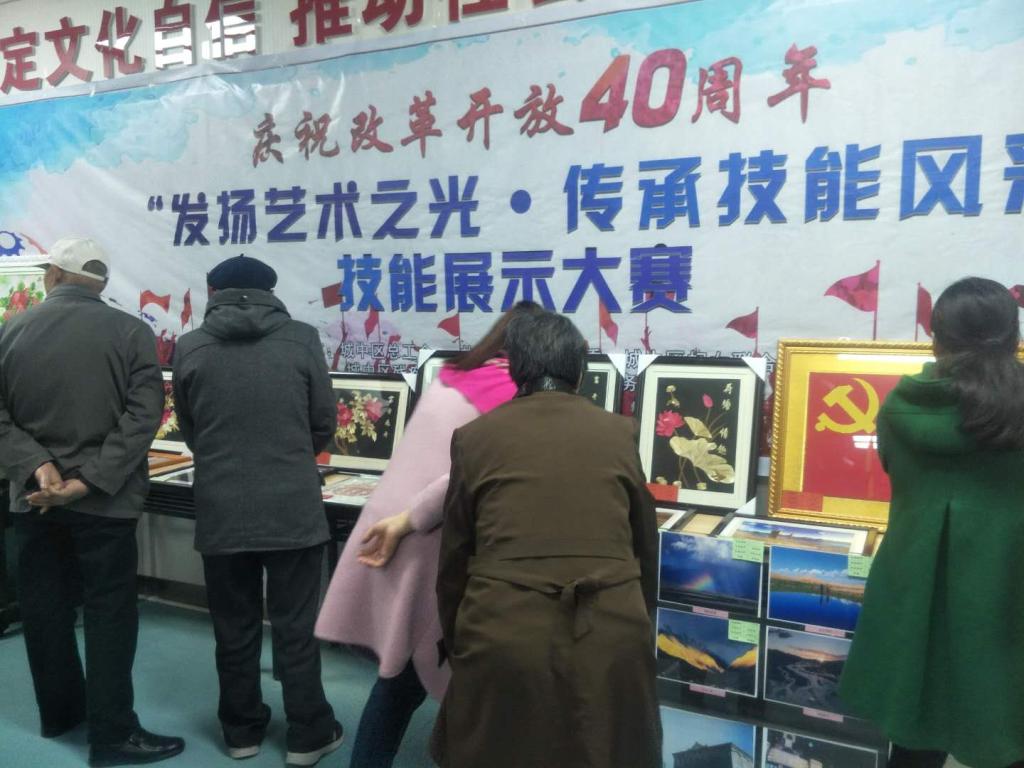 为庆祝改革开放40周年,为多才多艺的广大职工群众提供展现自我的空间和舞台。进一步提升广大职工群众的创业技能和水平,激发职工群众创业、创新、创造活力,加快广大职工群众增收致富步伐,使更多的艺术人才参与到全民创业的行列中来,近日,城中区群团服务站主办的庆祝改革开放40周年“发扬艺术之光传承技能风采”技能展示大赛活动在西宁市群艺馆举行。作品有书画、摄影、自制手工艺的147幅,区—街镇—村(社区、企业)“群众之家”的广大职工群众100余名观看此次作品技能展示活动。