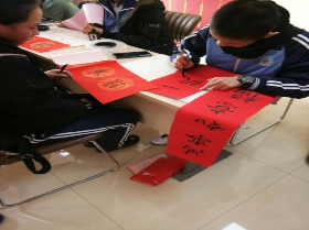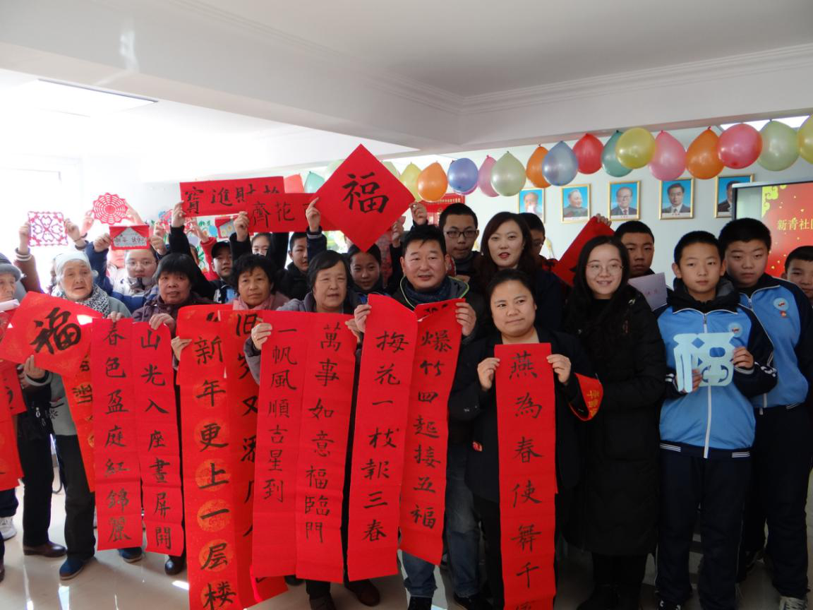为深入贯彻落实党的十九大精神,提升辖区青少年、居民的传统文化素养,丰富和满足广大青少年、居民群众的春节文化生活,搭建邻里之间幸福桥梁,增强社区党委的凝聚力、吸引力。在新春佳节来临之际,南滩街道新青社区党委联合辖区党建联盟单位十一中学学生、党员和辖区居民共同开展了“送福送春联 墨香四溢暖民心”写春联、剪窗花活动。