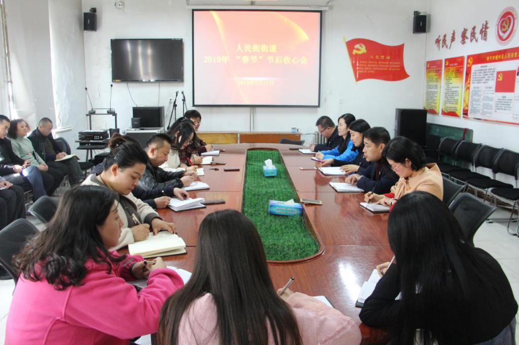 为进一步改进作风,严肃工作纪律,规范工作秩序,2月11日,春节后上班第一天,人民街街道组织全体干部职工召开节后收心会,对工作人员到岗在位、遵守工作纪律、履行工作职责等作出具体安排,督促全体干部职工收心提神、投入工作状态。