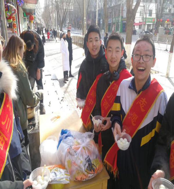 东台社区与南川西路中学团委联合开展“颗颗汤圆送祝福、暖暖真情传东台”主题活动,在南川西路71号沿街小区楼前,为过往的行人精心准备了元宵,邀请他们现场品元宵,让他们在寒冷的天气里感受节日的温暖,同时为环卫工人送上了小礼品以及节日的问候,感谢他们的辛勤付出,同时也呼吁大家用实际行动自觉维护公共环境,在节日期间不燃放烟花爆竹,减少空气污染,以自己动手做花灯的方式低碳环保过元宵。
