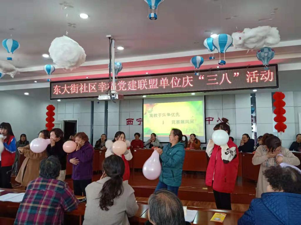 为了提高妇女对自身权益知识的掌握,同时更好的展现巾帼风采,以健康向上,充满活力的精神面貌树立妇女形象,在第109个国际妇女节来临之际,饮马街街道东大街社区党委联合辖区8个“幸福党建”联盟单位以及辖区居民共60余人,开展“寓教于乐争优先,趣味竞赛展风采”为主题的趣味知识竞赛。