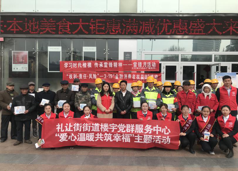 近日,礼让街街道党群服务中心成员单位中国工商银行中心广场支行组织辖区40余名环卫工人开展了“春华送暖”橙色互助爱心服务活动,为进一步加强非公企业党的建设,探索扩大“两新”党组织党建工作覆盖面的有效载体,架起党与企业的“连心桥”,礼让街街道党工委依托打造的楼宇党群服务中心启动“七色彩虹桥”服务活动,即红色链接桥、橙色互助桥、金色共享桥、绿色服务桥、青色学用桥、蓝色和谐桥、紫色关爱桥为代表的“七色彩虹桥”。