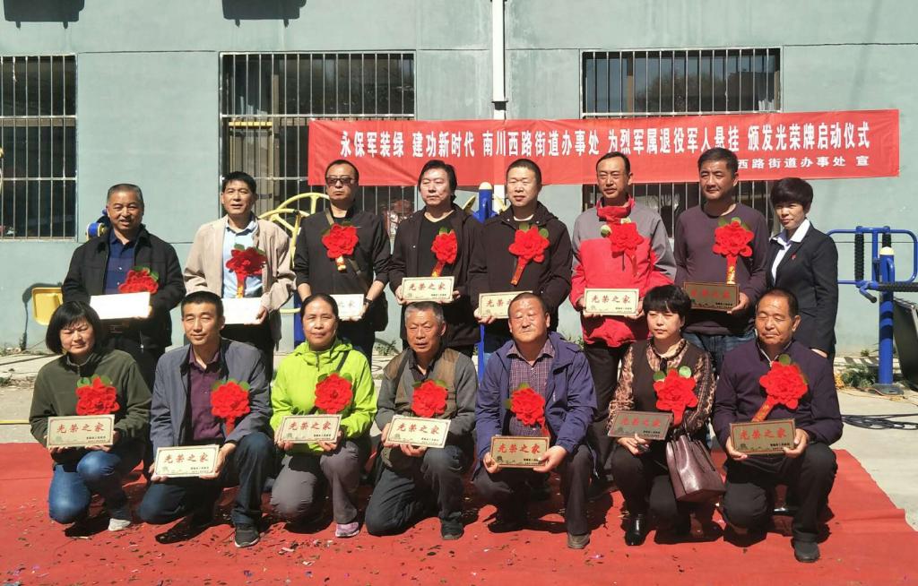 为做好悬挂光荣牌工作,弘扬拥军优属良好传统,营造爱国拥军、尊崇军人的浓厚社会氛围,推进军人荣誉体系建设,增强军属家庭的自豪感和荣誉感,激励更多优秀青年树立参军报国的宏伟志向。4月23日,南川西路街道办事处联合辖区五个社区举办“永保军装绿 建功新时代”为主题、为烈属、军属、现役军人家属和退役军人等家庭悬挂光荣牌工作启动仪式。