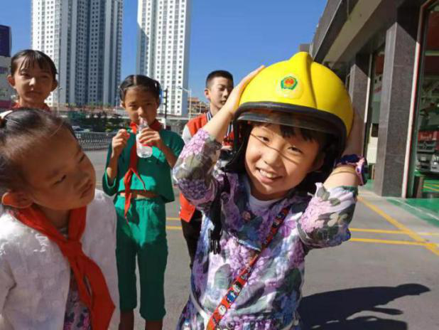 首先学生和老师们参观了消防专用器械的演示。当孩子们看到消防车上装满了各种各样的消防工具时,迫不及待地向消防员提了许多问题,天真的话语给大家带来了阵阵笑声。消防员耐心细致地回答了孩子们的问题,并带孩子们认识了消防斧、高压喷射枪、泡沫喷射枪、定位器、呼救器等。消防队员还用浅显的语言为孩子们讲述了消防常识。防车内部结构,并体验了消防服。通过亲身体验让孩子们感受到消防职责的神圣和消防官兵的艰辛,同时消防队员们的勇敢、守纪的精神品质也激励了大家。