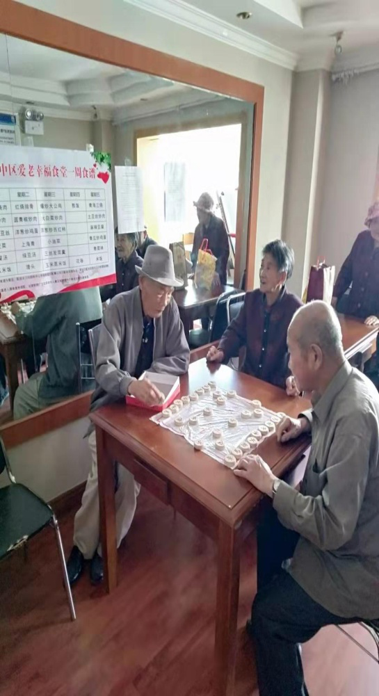 “一娱乐”享舒心。老人们年龄大了,出门不方便,儿女们工作又忙,难免感到寂寞。现在有了“幸福食堂”,大家还可以在吃饭前聚在一起下象棋、做运动、聊天,回忆过去的点点滴滴。“一条棉被,剪成两半,永不放弃,永远相连,记录着红军战士与老百姓之间的亲密感情,象征着共产党和人民群众须臾不可分离的鱼水深情,告诫党员坚持同人民风雨同舟、血脉相通、生死与共,弘扬伟大长征精神,坚持一切为了人民,一切依靠人民,必须把人民放在心中最高位置……”工作人员深情地向老人们讲述《半条被子的温暖》,整个食堂内其乐融融。亲人般的关爱和温暖洋溢在“幸福食堂”中,社区的“幸福食堂”已真正成为辖区老人们的“第二个家”。