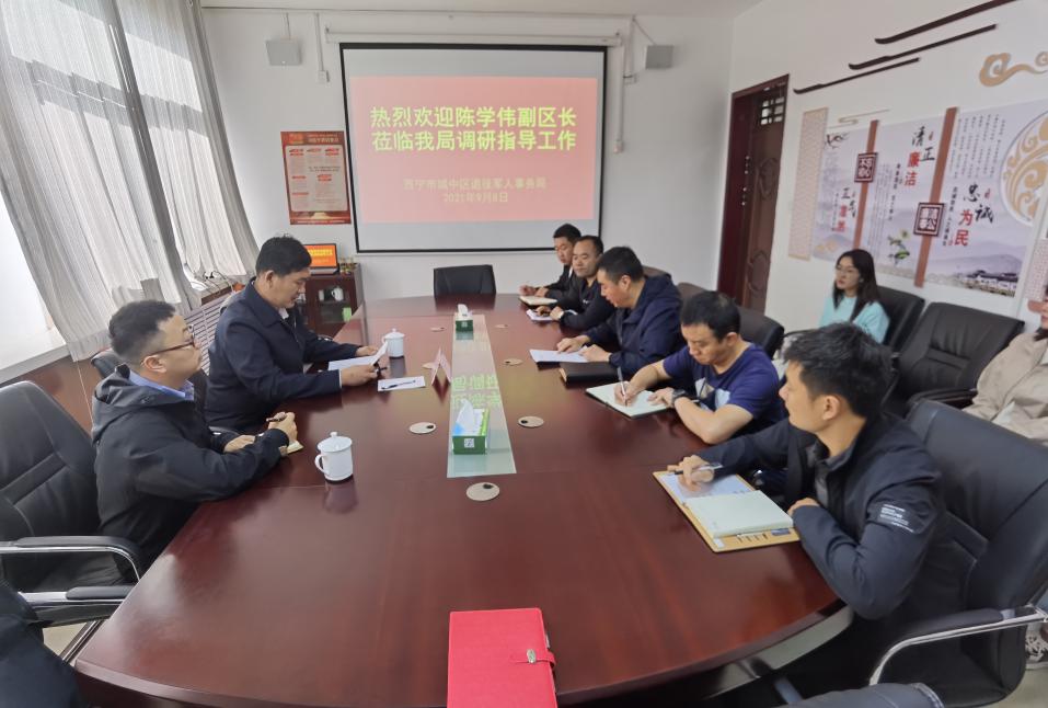 9月8日,城中区人民政府副区长陈学伟来到区退役军人事务局,调研指导区退役军人事务工作。