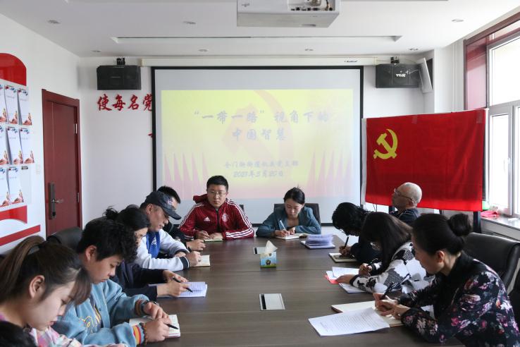 支部党员讲党课党史学习再升温。支部党员马文娟以《“一带一路”视角下的中国智慧》为题为全体党员讲授了专题党课。讲课中,她从“一带一路”的组成,提出的政治、经济背景,深刻阐述了“一带一路”建设是一个互利互惠的事业,最后用生动鲜活的事例诠释了“一带一路”是和平之路、繁荣之路、开放之路、文明之路。此次专题党课,让全体党员理解了中国共产党艰辛探索的奋斗之路,进而从党的百年伟大历程中汲取智慧和力量。纷纷表示,只有知党史才能自觉牢记初心,明党史才能坚定担当使命。