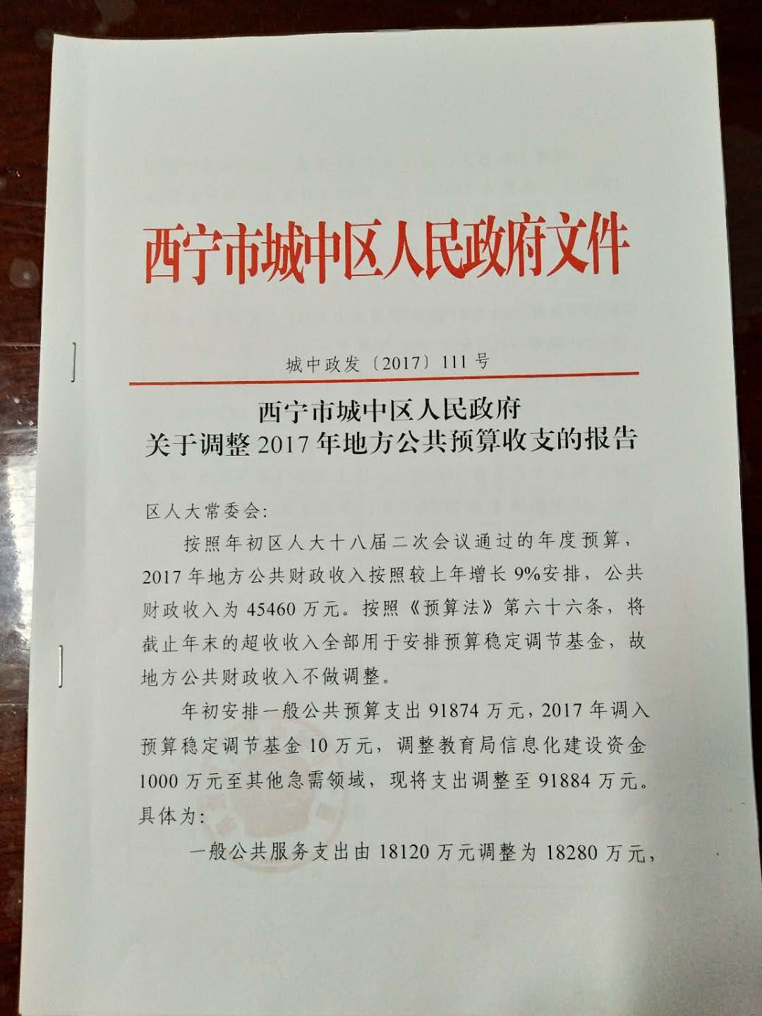 关于批准城中区人民政府调整2017年地方公共预算收支的决议
