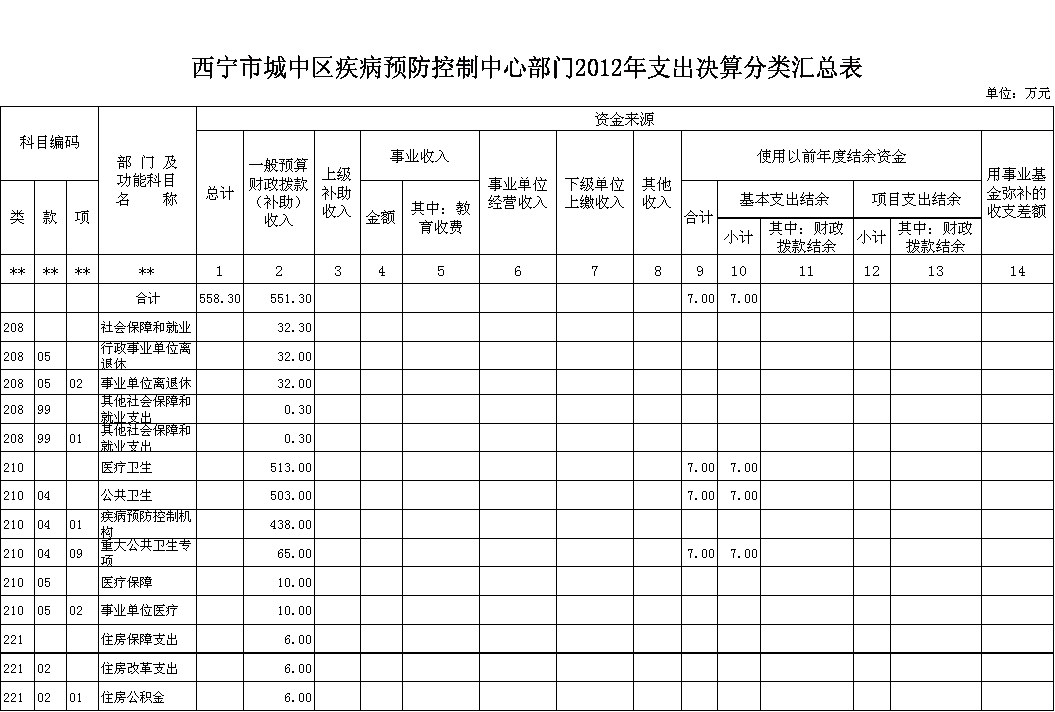 西宁市城中区疾病预防控制中心部门2012年支出决算分类汇总表
