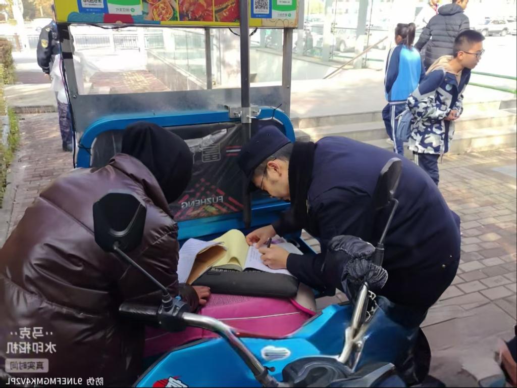 细耕市容“责任田”,联合执法显成效。强化校园周边执法力度,结合各校实际,采取“定时+及时+错时+延时”“警告+惩戒+处罚”相结合的执法方式,坚决取缔校园周边200米范围内流动摊贩和噪音扰校行为。实施专人定岗值守,执法人员上岗护学时间与学生上下学同步,执勤力量依据学校实际动态调整,全力维护校园周边市容环境秩序。近期,联合市场监管部门开展专项整治行动,共出动执法人员12人次,清理杂乱张贴40余处、占道经营80余起,排查校园周边户外广告、门头牌匾21处,并对4名长期占道经营且拒不配合执法的摊贩下达《责令限期改正通知书》和《先行登记保存证据通知书》,对车辆实行7天暂扣处理,进一步净化了校园周边环境。