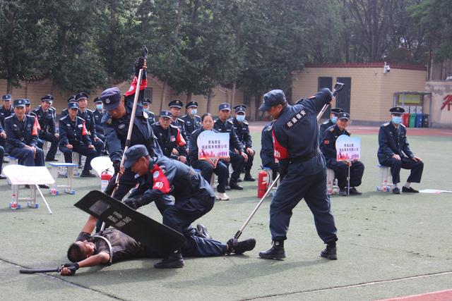 此次技能竞赛主要通过各代表队入场式、列队基础动作汇报、处置“刀斧砍杀”应急事件演练、处置“刀斧砍杀”事件演练、理论知识竞答等内容开展。在各代表队入场式、列队基础动作汇报环节中,各参赛队员精神昂扬、着装统一、动作整齐。在处置“刀斧砍杀”应急事件演练环节中,保安人员熟练运用器械,达到了“四快”标准。在干粉灭火器实喷操作环节中,各参赛队的代表按照干粉灭火器实喷操作流程进行了演练。