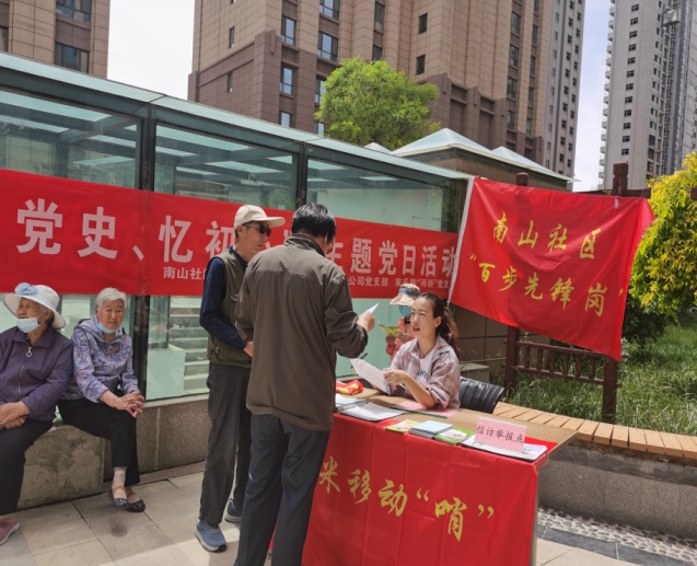用心倾听民声,移动办公桌开启家门口的为民服务“如意门”。南滩街道把党史学习教育与为民服务办实事工作紧密结合起来,在学思践悟中筑牢理想信念,在知行合一中树牢担当精神,以学党史办实事、强化服务为抓手,南滩街道南山东、南山、南山西、建新、农建、新青各社区建立了移动办公桌、“百米移动哨、“百步先锋岗”“周周通移动办公桌”服务模式,将服务职能下沉,深入辖区各个楼院,把服务触角延伸到群众家门口,全方位为辖区居民提供高龄补贴审核、残疾人两项补贴审核等服务。与社区群众面对面交谈,听取居民对社区工作的意见和建议,方便居民群众办事,第一时间发现、回应、记录、协调解决居民诉求,切实实现群众少跑路、服务零距离,服务更便民。“社区移动办公桌搬到咱家楼前,为我们提供上门服务,还为大家宣传相关的法律知识和政策,太方便了!” 60岁的南大街116号小区居民崔大娘高兴地说道。