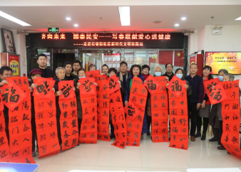 “写春联 送祝福”欢欢喜喜过大年。过大年,写春联是中华传统民俗文化,是象征吉祥,表达人民向往美好生活的风俗。为了丰富辖区居民文化生活,喜迎虎年新春,在石坡街社区新时代文明实践站开展“我们的节日•春节”暨“写春联 送祝福”活动。把浓浓的年味和新春祝福送给社区居民。活动现场暖意融融,西宁市文联的六位书法家们铺好宣纸,蘸饱墨汁,认真为辖区群众书写着一副副带有墨香和美好祝福的春联。社区居民对本次写春联、送春联的活动十分感兴趣,纷纷驻足围观,与老师进行沟通交流,有些居民挑选自己喜欢的对联词,让书法老师帮忙书写对联。短短的时间,社区书法志愿者就书写出上百幅深受群众喜爱的新春对联和“福”字,龙飞凤舞的春联,气韵十足,洋溢着浓厚的新春气息。大家都纷纷前来挑选自己心仪的对联。居民们手里拿着书写好的对联称赞起六位老师的书法水平高超,老师们也热络地与居民进行交流分享。居民们拿着这样的春联,真是高兴地不得了,纷纷表示谢意与赞美。居民张文说:“志愿者现场写春联,与买春联的感觉完全不同,这样年味更浓,过起年来更有意义。”
