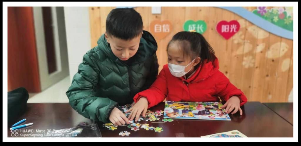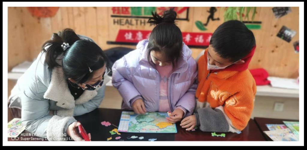 “这块儿应该在这里”“这个颜色涂错了”“我已经做完了,我帮你吧小妹妹”……儿童之家里充满了孩子们的欢声笑语。蜘蛛人拼图,激起了几个小男孩的兴趣,我负责贴左边,他负责贴右边,虽然有贴错的,需要小朋友从头开始,但这点小困难并没有浇灭小朋友的热情;简易涂色沙画,几个小姑娘玩得特别开心,小朋友分工明确,摊开涂色卡,打开有色沙子,我先涂裙子,我涂眼睛,我再给公主贴个钻石耳环,大家带着各自任务一个个开始忙碌了起来;“这是我们国家的地图,大家知道青海省在哪吗?知道的同学请举手,然后拿上青海省的图标贴到相应的地方。”话音刚落,孩子们纷纷举手“我知道,我来贴”,一双双雀跃的小手,一声声稚嫩的童音,让孩子们在这个寒冷的冬季假期里感受到了社区儿童之家的关爱和温暖。