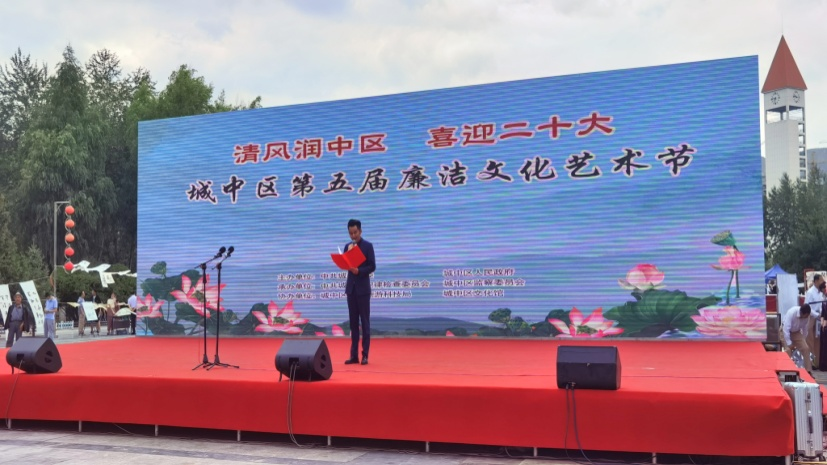 廉洁清正永远是时代的呼唤;勤政廉洁永远是人民的期盼。为深入推进廉洁文化建设,增强党员干部纪律规矩意识,营造“感恩奋进、拼搏赶超”的强大气场和风清气正、干事创业的良好氛围,7月14日,由中共城中区委、城中区人民政府主办,城中区纪委监委承办,区文体旅游科技局协办,各党组、党(工)委,区委各部门,区直各单位,各人民团体共同参与的“清风润中区·喜迎二十大”廉洁文化宣传月暨第五届廉政文化艺术节活动在城南人民广场成功举办。