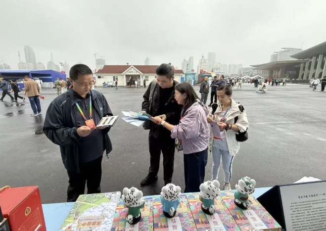 展台上,西宁带来的雪豹文创摆件萌趣十足:有的身着传统服饰、手持书卷,似在娓娓道来西宁的历史文脉;有的怀抱民族乐器,仿佛奏响城市与国防的 “协奏乐章”。还有精心设计的文化邮册,将西宁的人文景致与国防教育的厚重感巧妙融合。工作人员向市民讲述西宁与海军、与国防的故事时,大家捧着文创小物,目光里既有对 “萌系雪豹” 的喜爱,更有对 “国防守护家园” 的深刻共鸣 —— 国防力量的强大,与城市文化的繁荣,本就是同频共振的 “家国二重奏”。