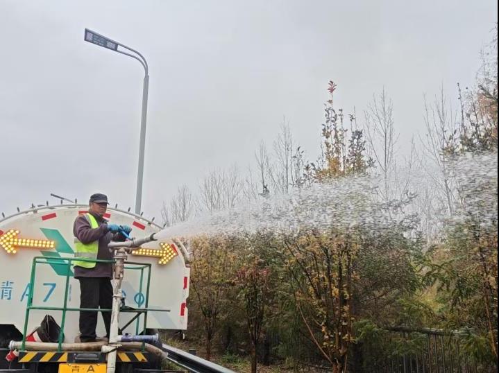 立冬后,随着气温持续走低,树木陆续进入冬眠期。城中区市政公用服务中心紧抓“昼化夜冻”的黄金养护窗口,科学调配作业车辆,扎实开展苗木冬灌作业,为植物安全越冬构筑坚实“防护屏障”,更为来年春季树木萌发新枝、焕发活力奠定良好基础。