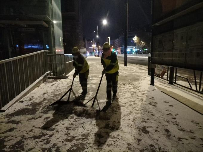 民生为本:畅通出行撑起“保障网”。此次应对首场降雪,中心坚持“预防为主、快速处置”原则,不因降雪量小而放松警惕,而是聚焦市民出行安全、通行效率与环境洁净需求靶向发力、精准施策。一线环卫工作人员24小时坚守岗位、高效作业,确保辖区街道、过街天桥、地下通道及公厕周边无死角覆盖、无隐患遗留、无环境死角。截至目前,辖区主要街道及各重点区域通行秩序良好,无积雪积冰引发的交通拥堵或安全事故,确保了道路安全畅通,路面干净整洁。