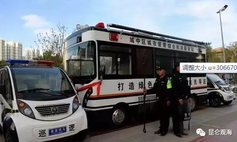 目前,城中区整合公安、城管、建设、环保、国土、食药监等多部门组成了一支300多人的执法队伍。同时配备了综合执法服务站、巡逻车等设备,辐射半径2公里,每两个小时在片区进行巡逻,保证区域内的问题及时发现,及时解决。