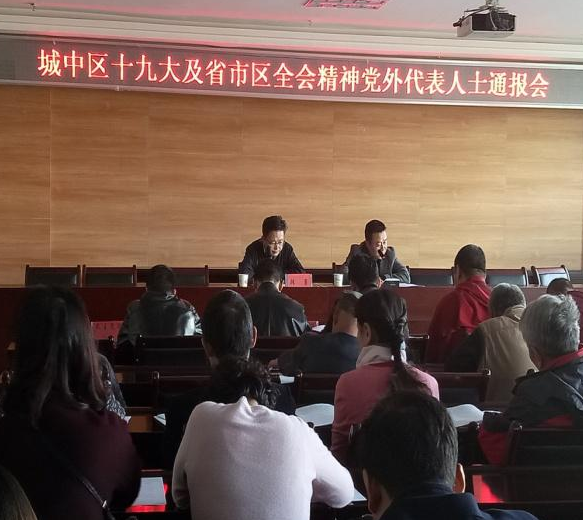 11月9日,城中区召开了党的十九大及省市区委全会精神党外人士通报会,城中区委统战部全体干部、全区各民主党派、宗教界、非公经济、工商联会员50余人参加了会议。会议传达学习了党的十九大精神提纲、省委十三届二次全会精神提纲、市委第十四届五次全会精神提纲、区委十六届三次全会精神提纲,并就贯彻落实好会议精神提出希望和要求,会议由区委统战部副部长、城中区非公党工委书记王生玺同志主持。