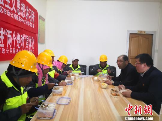 如今,城中区环卫工人每顿饭只需交纳3元,就能享受到两荤一素的午餐。“菜的品种丰富,吃面吃米随意挑选,大家心里都热乎乎的。”王有义说。