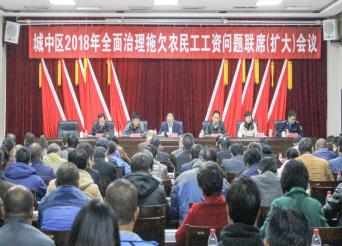 为做好保障农民工工资支付工作,高标准完成治欠保支目标任务,高质量抓好工程建设等领域源头管控,高效率治理拖欠农民工工资问题,近日,城中区召开2018年度全面治理拖欠工资问题联席(扩大)会议,省人社厅、市人社局相关领导、区委常委、副区长井虎清、联席会议成员单位及辖区建筑施工企业代表共120余人参会。