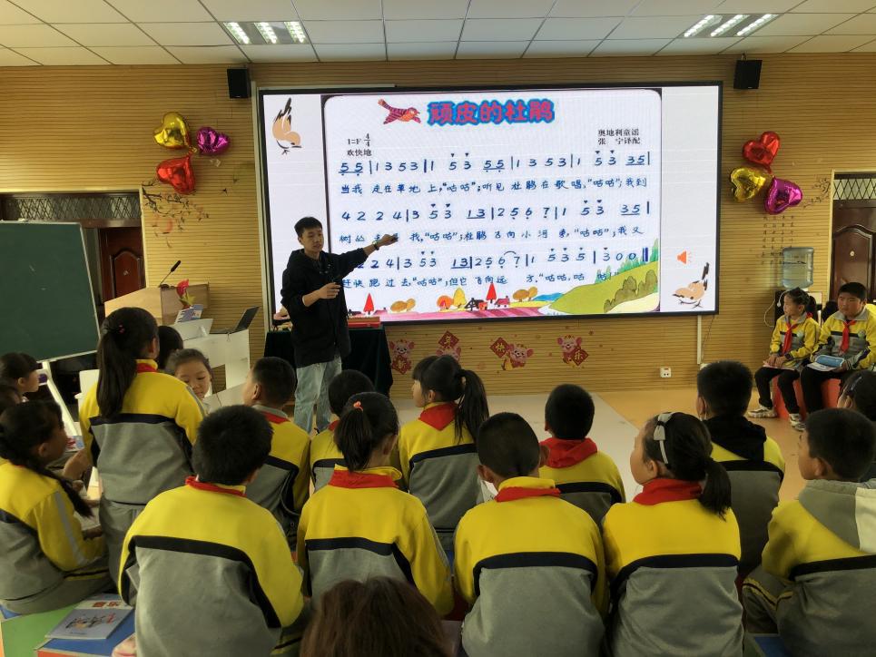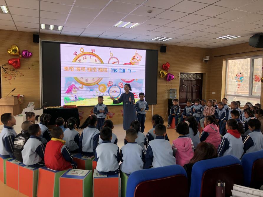活动伊始,来自逸夫小学的侯珺老师通过“闯关游戏”,将51 3 1四个音符生动有趣地呈现在了一年级孩子们的眼前,极大地激发了学生的学习兴趣。西关街小学的刘雅琪老师为二年级的孩子带来了一位“神秘的朋友”,在层层设计的环节中给大家带来了歌曲《音乐小屋》。同样设计了有趣的“魔法”环节,谢家寨的侯凯老师带来了有趣的歌曲《顽皮的杜鹃》。擅长舞蹈的阳光小学的雷雷老师用肢体语言表现出了蒙古族儿童歌曲《草原就是我的家》,学生们在舞蹈动作中感受到了蒙古族音乐作品的特点。最后一节课是来自南川东路小学的孟繁星老师呈现的歌曲《每当我走过老师窗前》,孟老师以自己优秀的即兴伴奏基本功,将歌曲以另一种方式为参与活动的老师留下了深刻的印象。