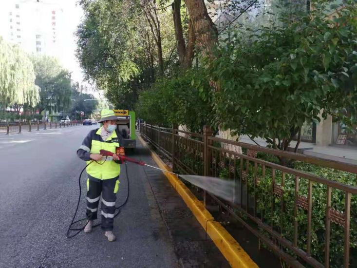 时值旅游旺季,外来游客及出行市民较多,为积极营造清爽“宜居”、美丽“宜游”的夏都环境,区市政公用服务中心细化保洁内容,对城区家具开展擦洗保洁工作。
