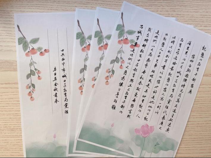 开印有“廉”字蜡印的信封,一张由教育系统美术教师设计的寓意“好柿莲莲”的精致信纸映入眼帘,信纸上跳跃的字形正倚交错,大大小小,开开合合,跌宕有致。“亲爱的教育干部家属,您好!家庭是社会的基本细胞,也是拒腐防变的一道重要防线,作为领导干部的家属,希望您在全力支持他们工作的同时,把家风建设摆在重要位置,以德治家、以俭持家、以廉保家……”。