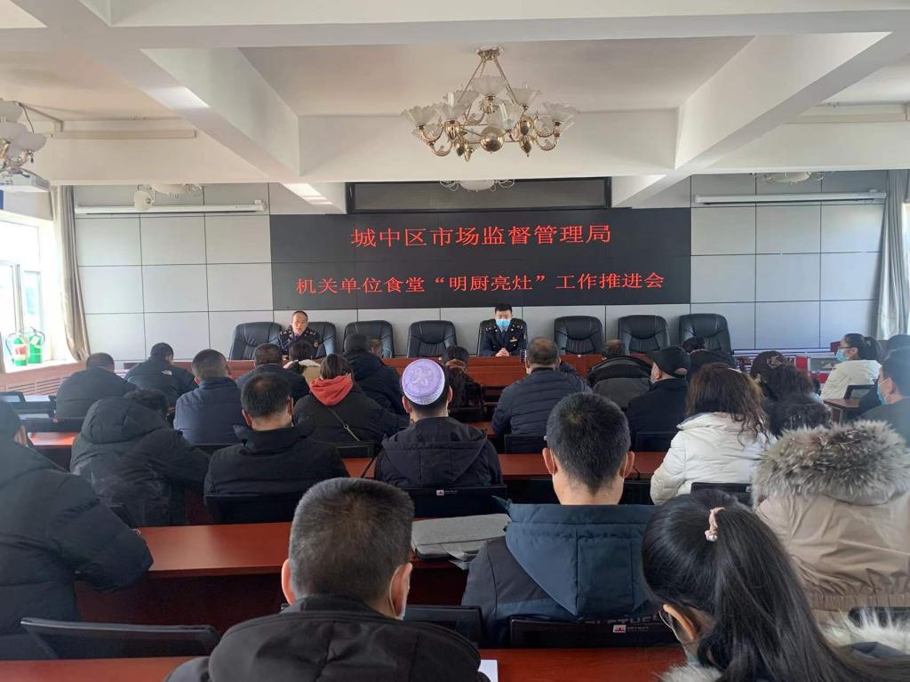 为进一步增强食品安全风险防范的靶向性,提高我区机关企事业单位食堂食品安全管理水平,有效保障职工饮食安全,12月20日下午,城中区市场监督管理局召开机关单位食堂“明厨亮灶”建设工作推进会,机关单位食堂负责人及监管人员等40余人参加了会议。会上,明确了“明厨亮灶”工程建设工作的重要意义,传达了《关于持续推进餐饮服务单位“明厨亮灶”活动的通知》具体要求,并对“明厨亮灶”工程建设工作作了全面部署。此外,工作人员现场演示了非现场电子监管平台,直观展示了后厨加工操作全过程。