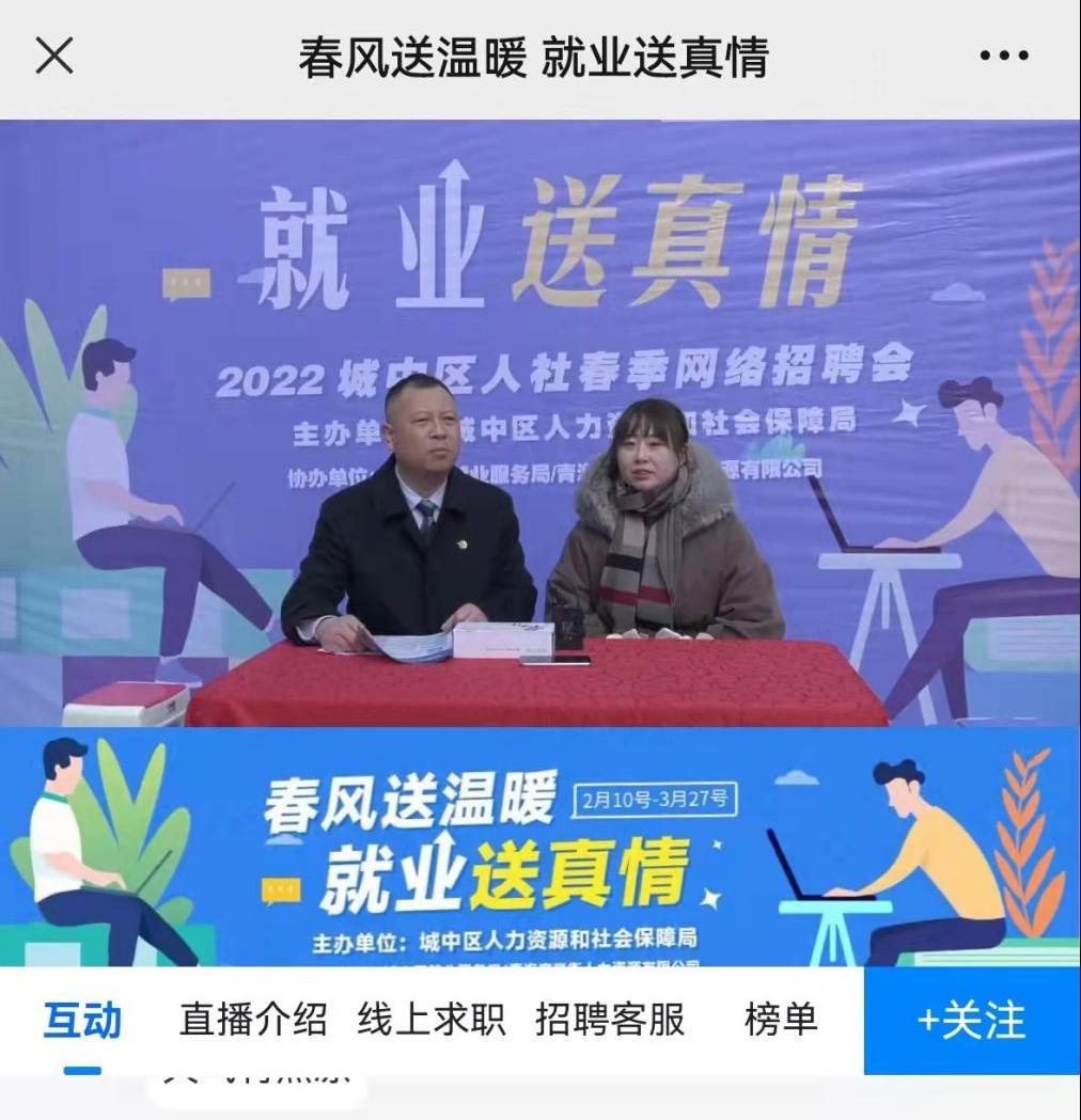 除了现场招聘,区人力资源和社会保障局联合西宁招聘网从2月10日至3月27日期间组织了100余家企业同步进行线上招聘,求职者足不出户,即可通过手机、电脑实现线上岗位查询和求职对接。求职者登录西宁招聘网“城中区2022年春风行动专场招聘会”专区,实名注册个人基本信息和联系方式后,平台精准匹配就业岗位,为用人单位推送。