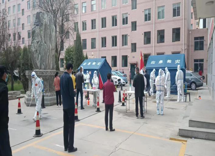 延伸疫情防控“生命线”。进入卫健局办公室,局机关工作人员正以娴熟的动作给一次性病毒采样管的试管码及生物制品的转运箱码上穿上一层“透明衣”,流程可谓繁琐、细腻,室内回荡着撕拉透明胶带和剪刀拿起落下的声音。一组粘、剪、贴、装完整的“流水线”工程呈现眼前,每天要完成约50万的打码工作。傍晚,天空下起大雨,他们争分夺秒,冒雨为院子里放置的应急物资穿上“雨衣”,哪怕淋湿头发和衣服,只为防止雨水浸透这些最“宝贵”的物资,保障后期的核酸检测工作顺利开展,解除一线防疫人员的后顾之忧。