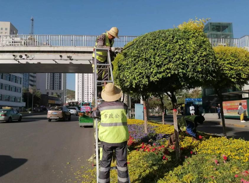 美,为更好的提升绿化景观效果,我中心立足于高标准、精细化,紧抓绿化养护有利时机,多措并举,对管辖范围内的公园、绿地、道路绿化带等进行修剪、打药、浇灌、清理、补栽、维修等各项精细化管护工作,全力营造更加靓丽的城市园林景观。