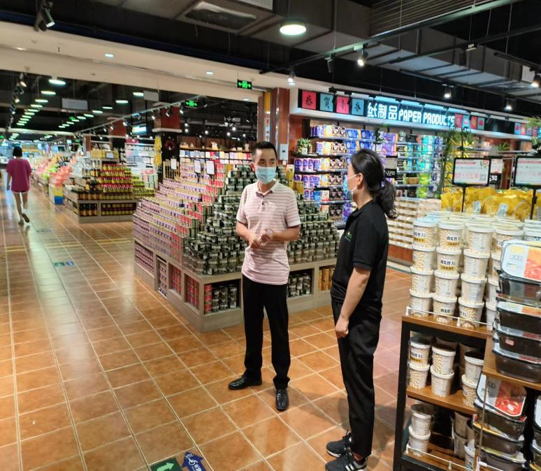 工作人员会同商超负责人按照测评标准及要求,深入查短板、促整改、抓落实,督促商超健全工作制度、浓厚宣传氛围,对督导检查发现的问题要求及时整改,确保督导检查不走过场、不走形式。检查同时,工作人员就企业创城工作提出了要求。一是在醒目位置设置行业规范、公益广告牌,突出宣传社会主义核心价值观,宣传诚信经营、讲文明树新风、未成年人保护等公益内容;二是服务台处设置无障碍服务牌,并标明服务项目,切实为残障人士提供全方位的贴心服务;三是卖场内设置轮椅通道、扶手、母婴室、无障碍卫生间等设施,保证无障碍标识明显,无障碍设施性能良好,并做好公共区域的卫生清洁工作;四是利用广播、LED显示屏循环播放社会主义核心价值观、诚信经营等公益广告,营造“人人知晓、人人支持、人人参与”的创城氛围。
