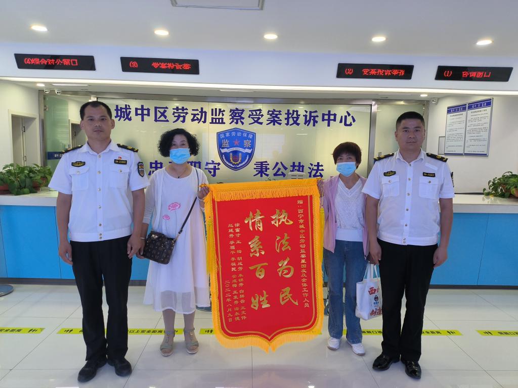 “衷心感谢你们,要不是你们,我的经济补偿金估计要不上了······”在城中区人社局劳动仲裁办公室拿着锦旗的大爷感激地说道。