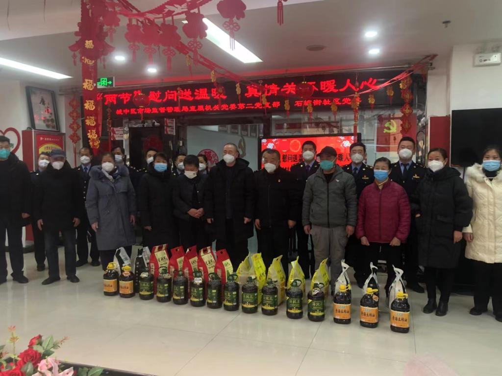 为了使困难群众度过一个欢乐温暖的春节,充分发挥基层党组织服务民生的重要作用,在新春佳节来临之际,城中区市场监督管理局直属机关党委第二党支部深入石坡街社区,开展“扶贫帮困送温暖”活动,为困难群众送去党的关怀和慰问,并提前送上新春祝福。